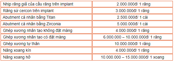Chi phí ghép xương nhân tạo có đặt màng: + 6 triệu/ răng