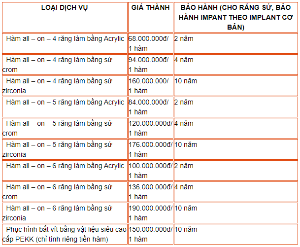 Chi phí răng toàn sứ trên implant: +3 triệu/ răng.