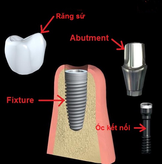 Abutment tức là những trụ nối giữa implant trong xương hàm và răng sứ trong miệng, răng sứ sẽ đứng trên abutment.