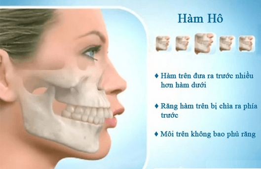 Vùng răng cửa bị chìa ra trước: Bệnh nhân bị hô sẽ có vùng răng cửa chìa ra phía trước gây mất thẩm mỹ khi cười. Thậm trí có những trường hợp hô nặng bệnh nhân không thể khép miệng khi thả lỏng cơ môi.